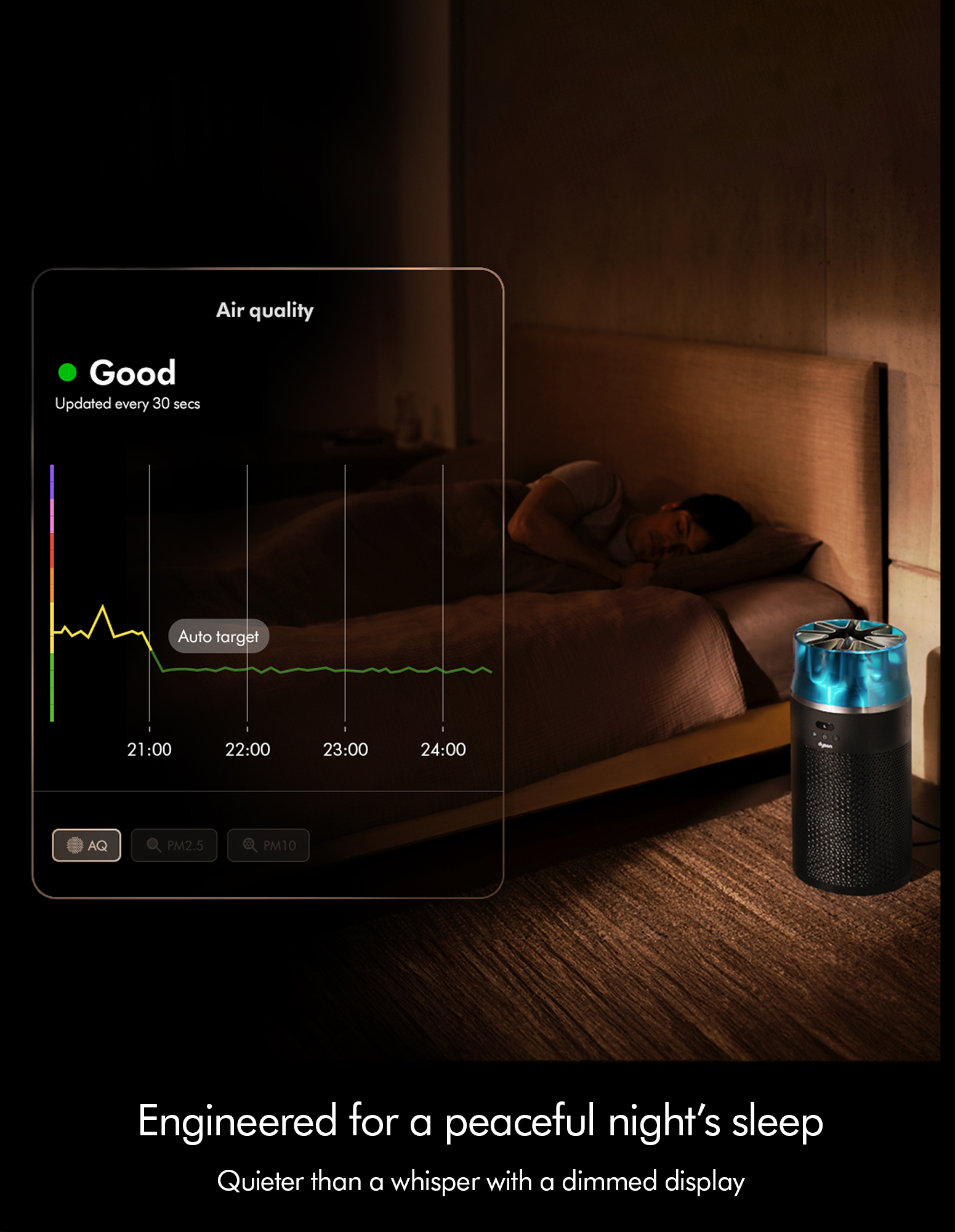 As quiet as a whisper.Our star-shaped nozzle reduces noise and turbulence, delivering pure air at just 24dB in Sleep mode.