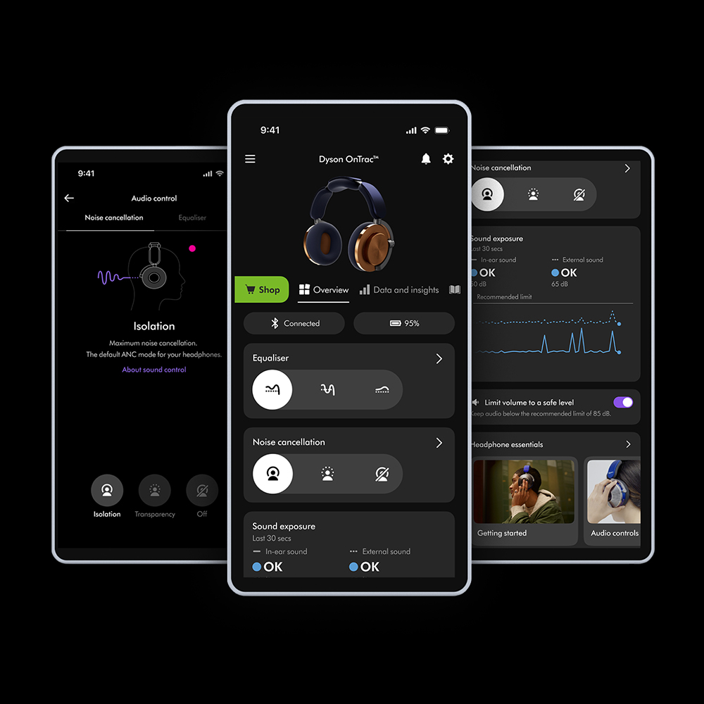 Dyson OnTrac™ customizable active noise cancelling headphones. 8 Active Noise Cancelling microphones cancel up to 40dB of unwanted noise, for fully-immersive listening. So you don’t miss a beat.¹Based on average listening time of 3 hours a day with ANC on. Performance may vary based on environmental conditions and usage.²With ANC on. Performance may vary based on environmental conditions and usage.