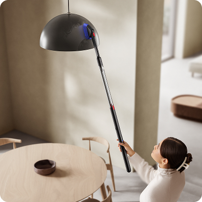 Cleans around chair and table legs and gets into awkward gaps with a simple twist of the wrist.