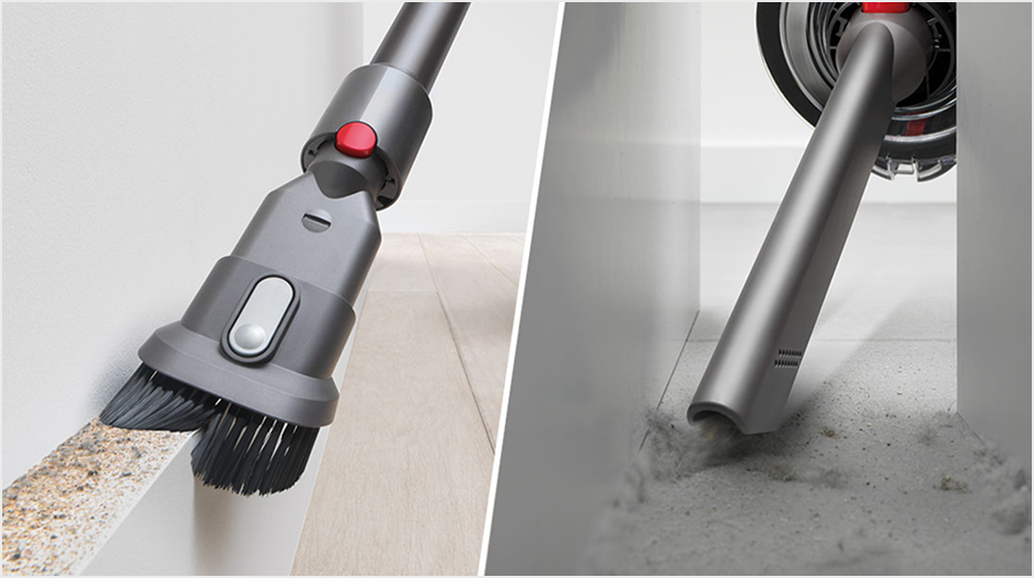 Combination tool has a wide nozzle and retractable brush for cleaning and dusting. Crevice tool for cleaning in hard-to-reach narrow spaces.