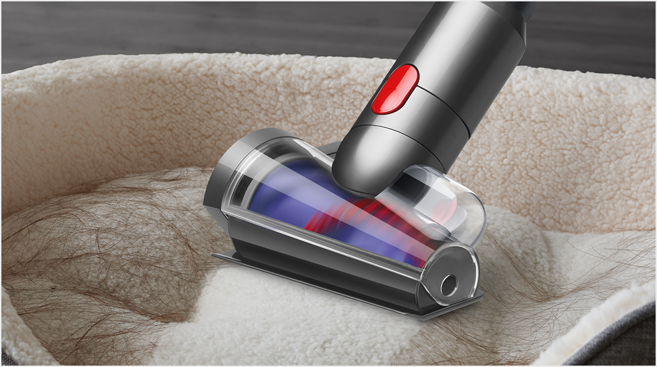 Archimedes screw brush bar removes hair from pet beds, car seats and stairs. Fast.