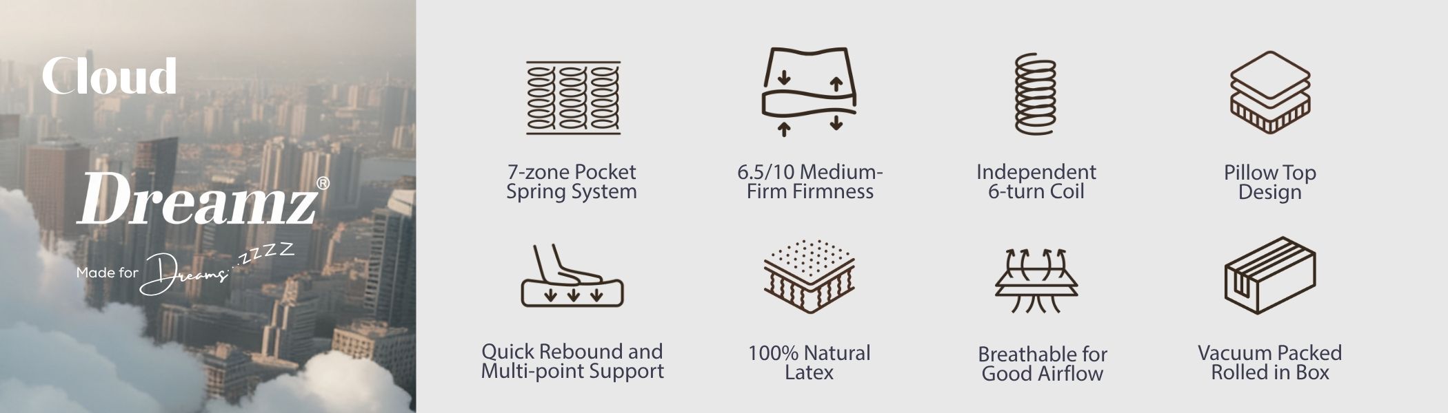 Dreamz mattresses are made for dreams, we want to you experience the best sleep you have never experienced, just like lying softly on the could, above all tiredness and business.