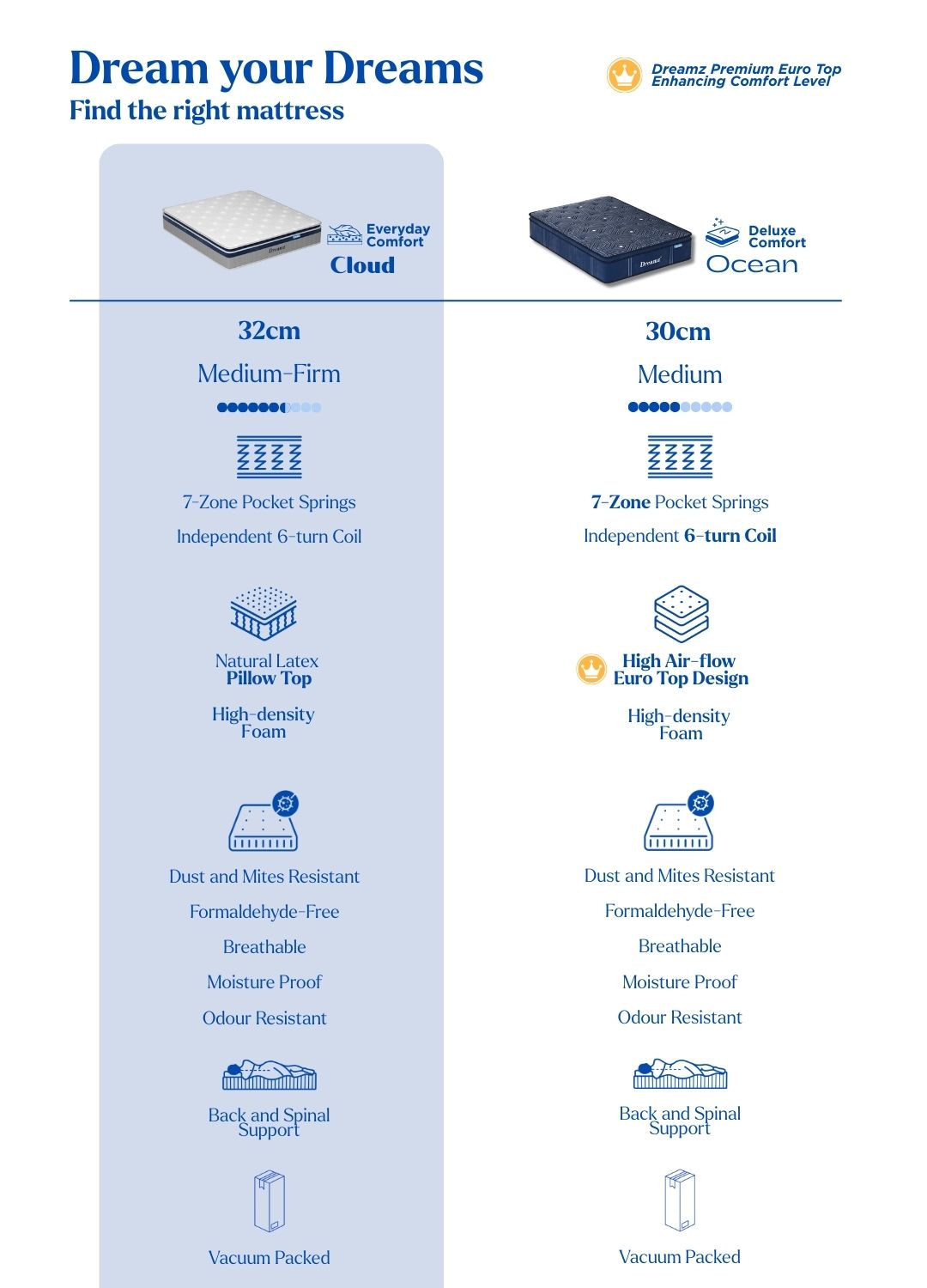 Do not worry, we get you! First, we want to assure you choosing Dreamz will be the best decision you made this year. Second, we have picked our top sellers loved by our customers to compare their key features just at the glance. So you can make an easier decision.