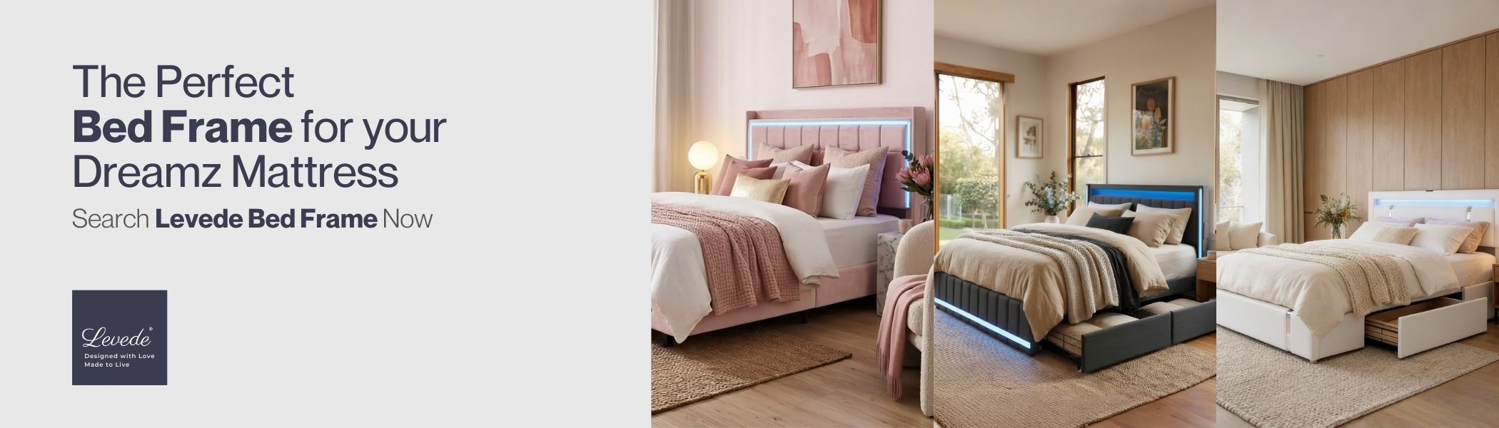 We hope you can find the best Dreamz for you and your loved ones. At the same time, we know you may be upgrading your entire bedroom, including your bed frame. We cannot wait to show you some of our premium collections from Levede to pair with your Dreamz mattress for a complete and hassle-free sleeping solution.