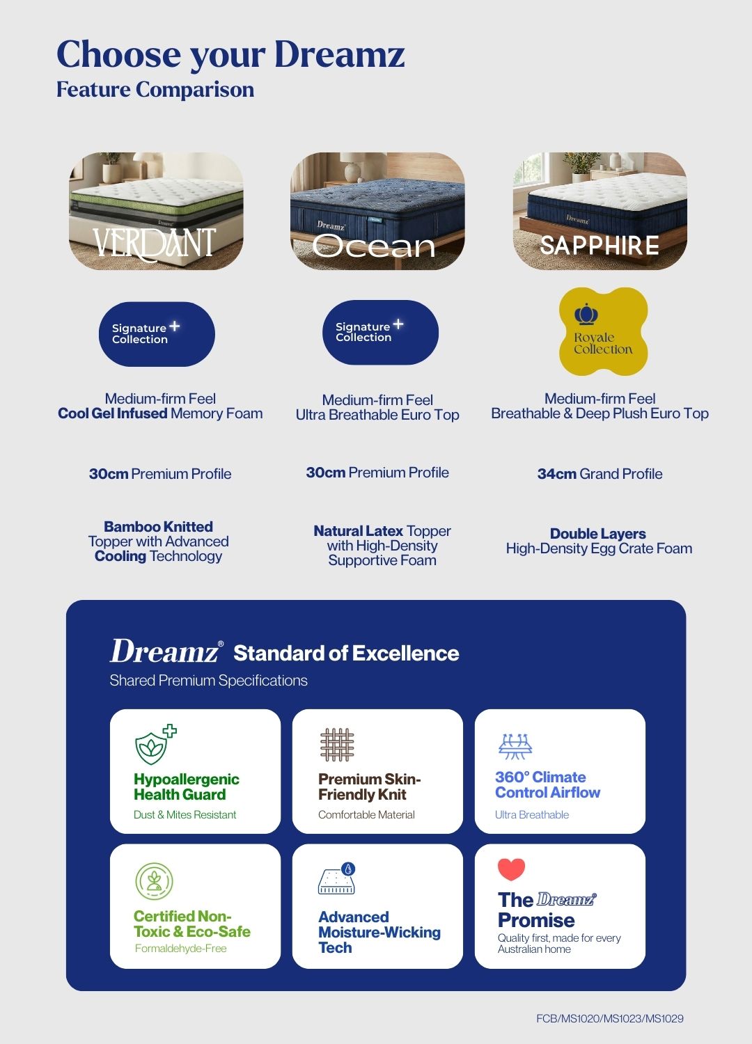 To make your decision easier, we’ve compared this Verdant mattress against two of our other best-sellers across different collections. Whether you want maximum luxury or a smart budget-friendly choice, compare the features below to find your perfect match.