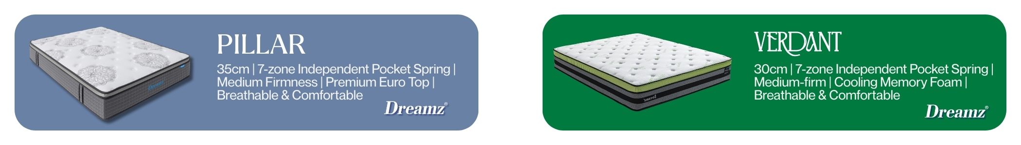 Dreamz Pillar or Dreamz Verdant – they are perfect for all season, but the best for summer time with its super breatability and comfortable and premium material.