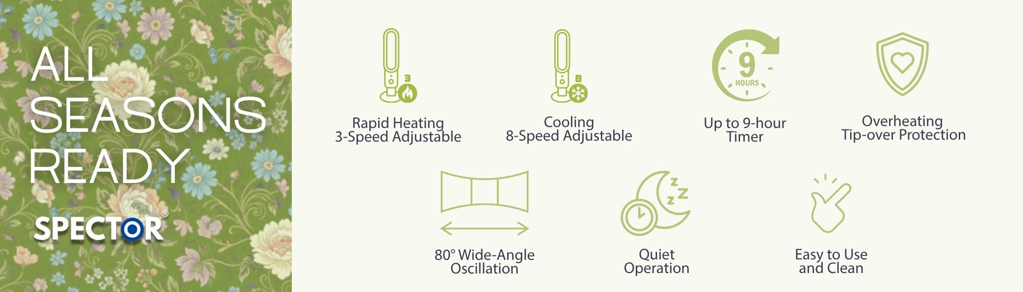Crafted with a sleek, bladeless design, the Spector tower heater is not only safe and easy to clean, but also adds a modern touch to any room. Perfect for homes, offices, or small spaces needing efficient, customizable heating and cooling solutions. Whether you need a heater fan in winter or an oscillating heater fan during transitional seasons, Spector delivers year-round comfort with innovative style.