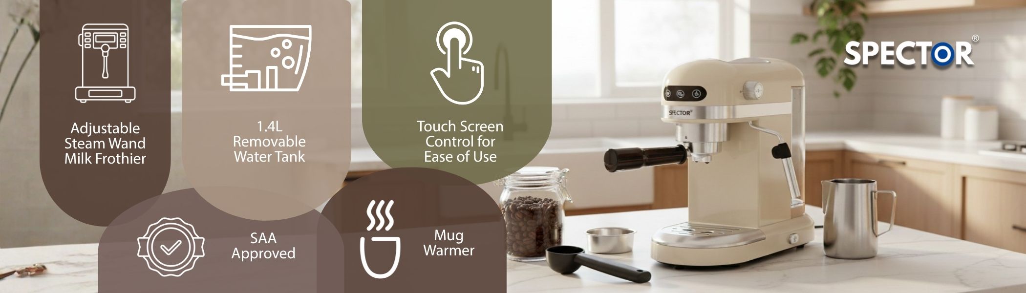 The Spector Coffee Machine is your ultimate partner for creating café-style coffee at home. Its professional features and ease of use make it perfect for any coffee lover.