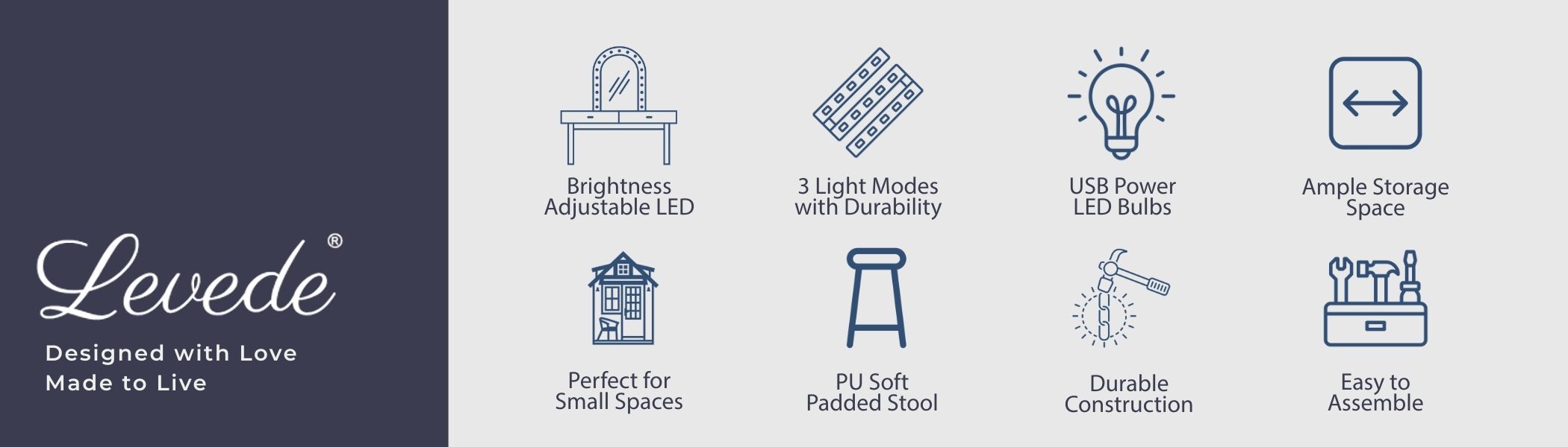 The Levede LED dressing table is an essential beauty accessory. It comes with soft eye-friendly lighting. Design your makeup to stand out.